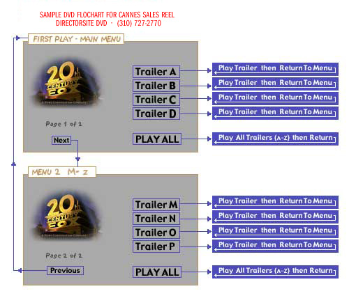 Sample generic flowchart for a DVD of a simple Trailer reel with trailers listed alphabetically.
